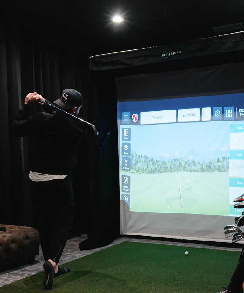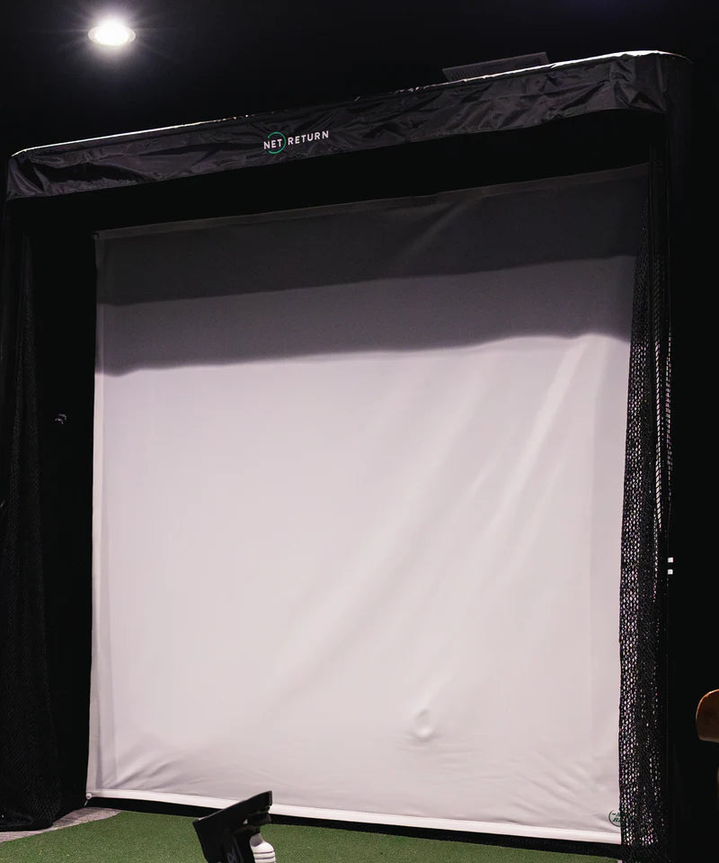 The Net Return Simulator Series 12 is the ultimate enclosure for a premium home or commercial golf simulator setup. Designed for performance, protection, and immersive visuals, the Sim Bay 12 features a sleek black aluminum frame and a floating HD impact screen. Whether you're practicing, playing simulated rounds, or watching entertainment, this bay delivers unmatched quality and functionality.